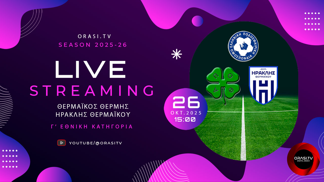 Live | Θερμαϊκός Θέρμης - Ηρακλής Θερμαϊκού (26/10/2025 15:00)