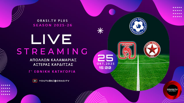 Live | Απόλλων Καλαμαριάς - Αστέρας Καρδίτσας (25/10/2025 15:00)