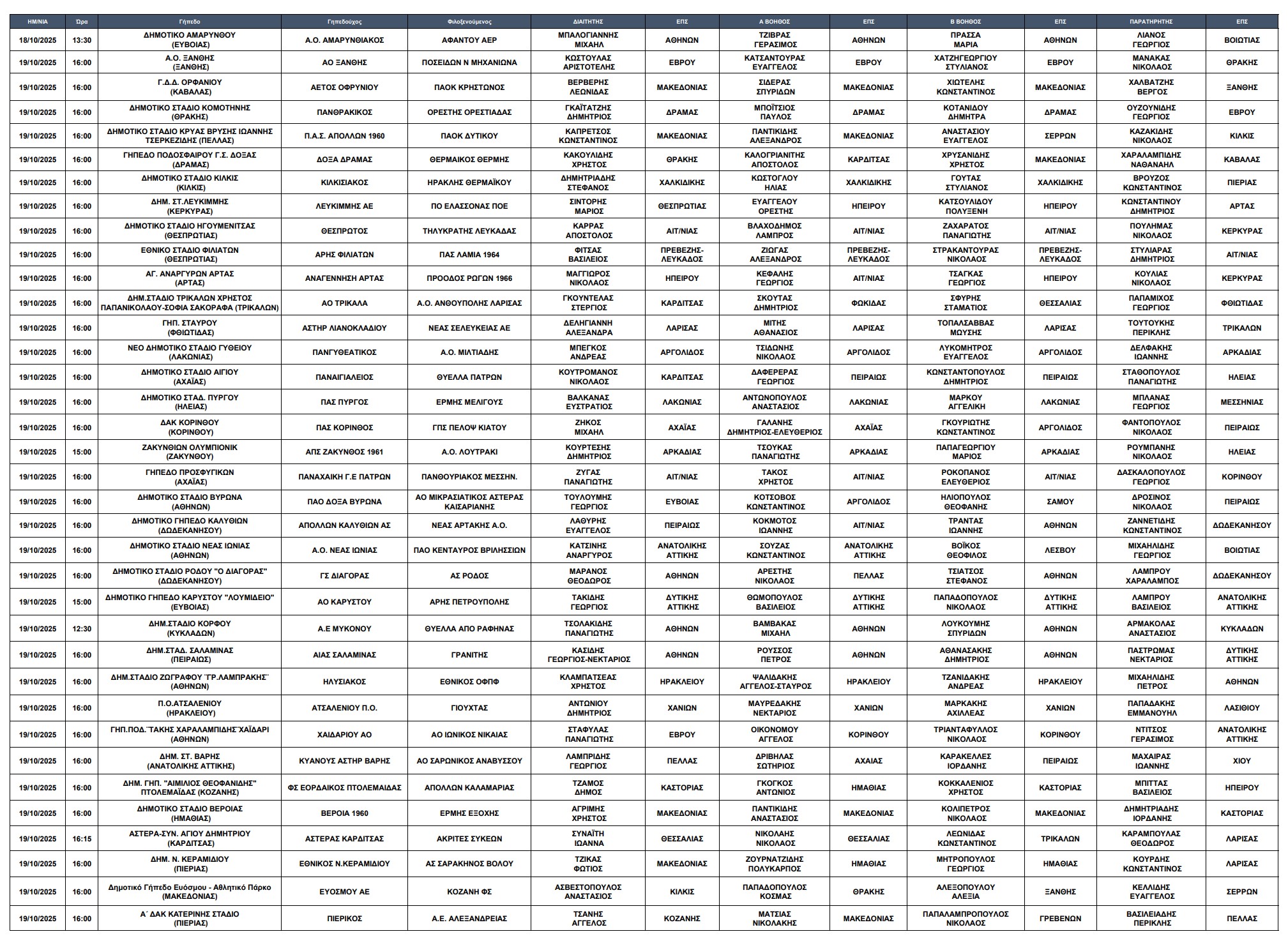 Τα αποτελέσματα των αγώνων του Σαββατοκύριακου 11-12/10/2025