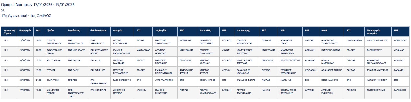 Οι διαιτητές του 1ου και 2ου ομίλου (18/1)