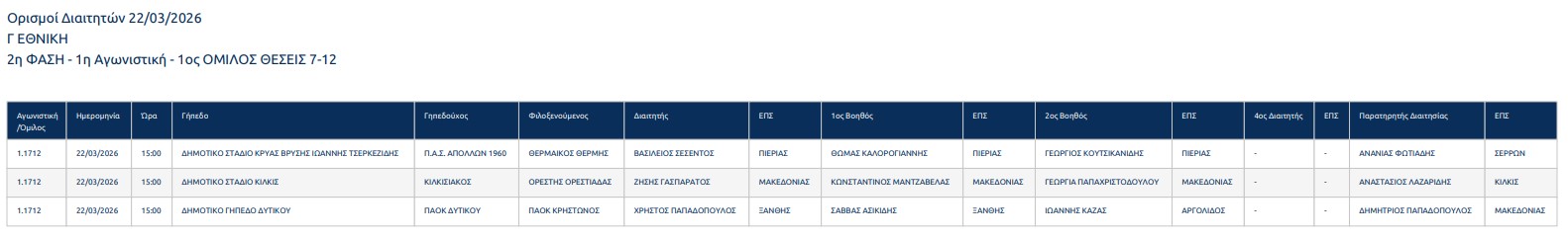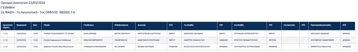 Οι διαιτητές του 1ου και 2ου ομίλου των plaoyff/out της Κυριακής 22/3/2026
