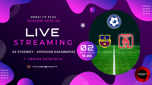 Live | ΑΕ Ευόσμου - Απόλλων Καλαμαριάς (2/11/2025 15:00)