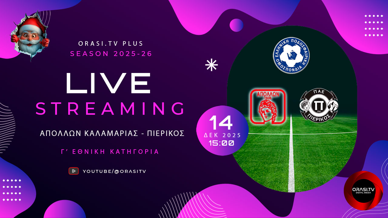 Live | Απόλλων Καλαμαριάς - Πιερικός (14/12/2025 15:00)
