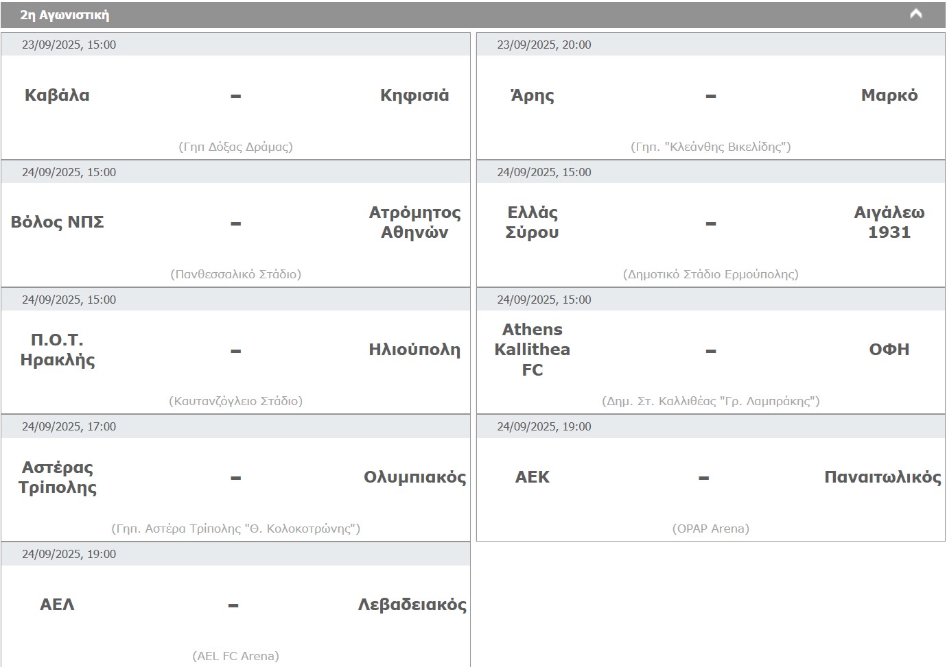 League Phase Κυπέλλου Ελλάδας Betsson: πρόγραμμα 2ης αγωνιστικής