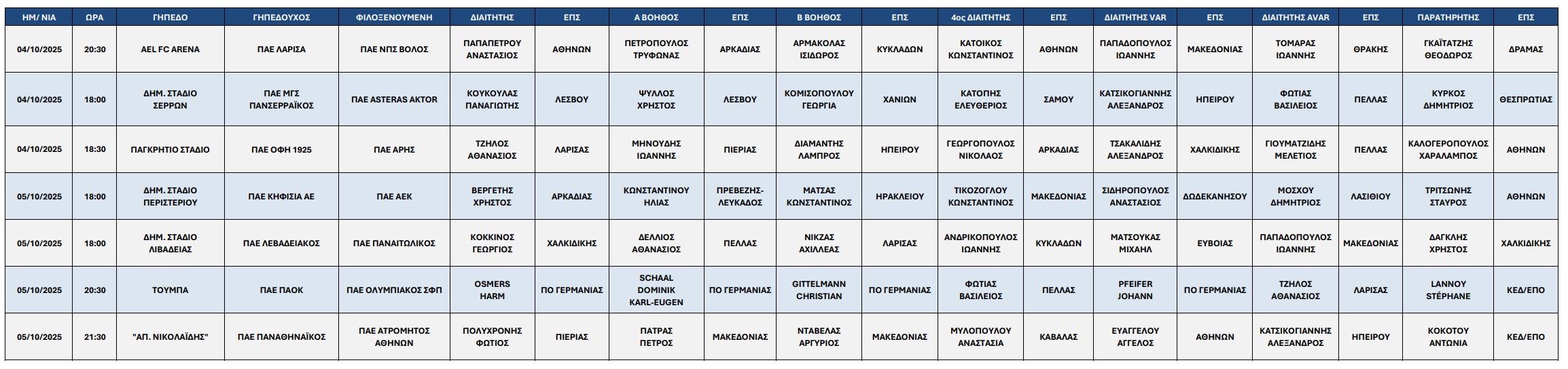 Οι διαιτητές των αγώνων της Κυριακής 5/10/2025
