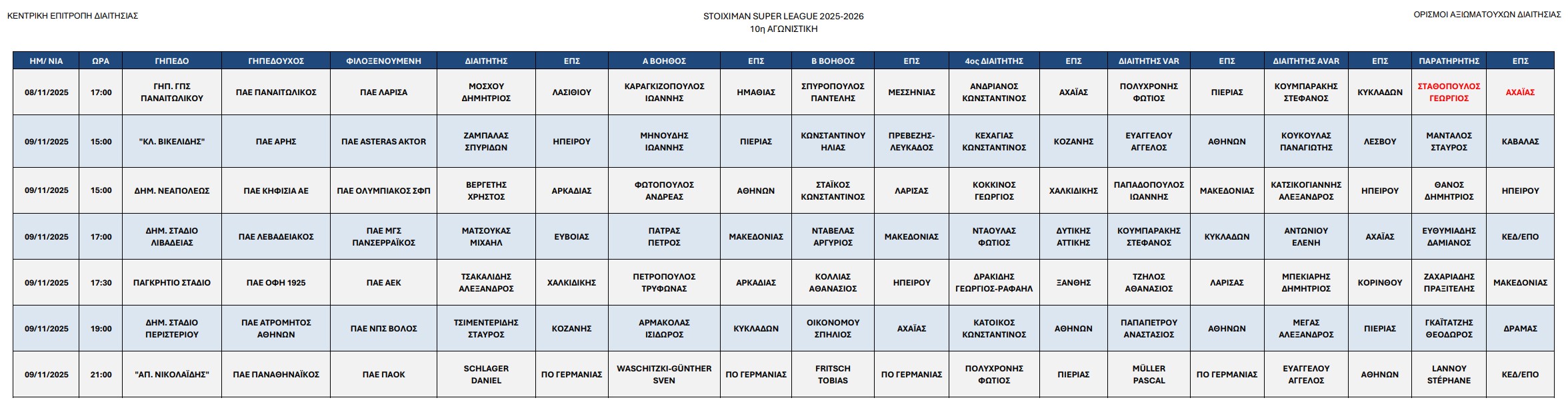 Πρόγραμμα αγώνων Σαββατοκύριακου 8-9/11/2025