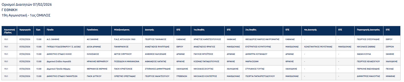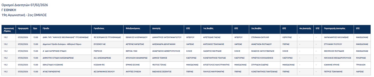 Οι διαιτητές του 1ου και 2ου ομίλου (7/2/2026)