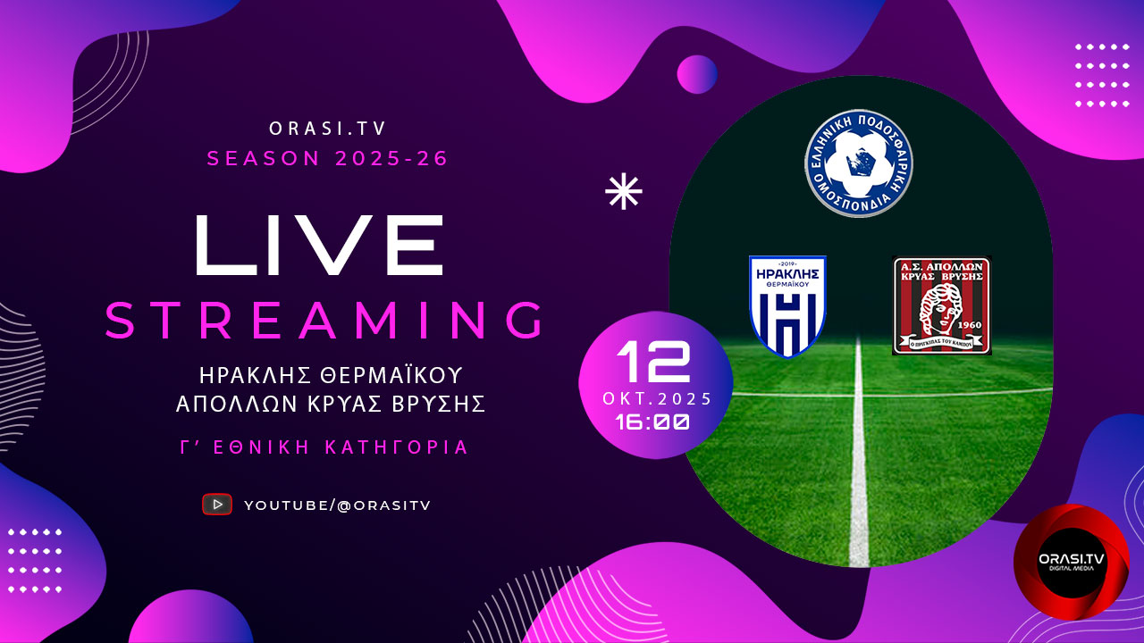 Live | Ηρακλής Θερμαϊκού - Απόλλων Κρύας Βρύσης (12/10/2025 16:00)